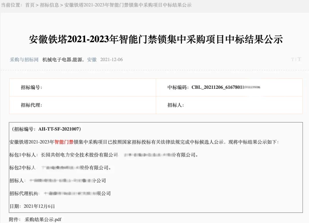 新突破 | 米兰milan共创连续中标安徽、江西铁塔智能门禁锁项目